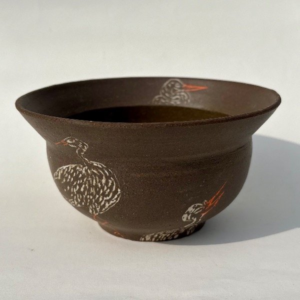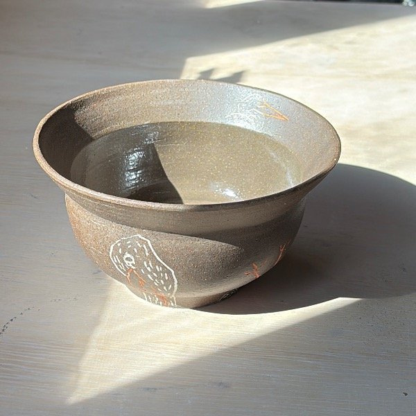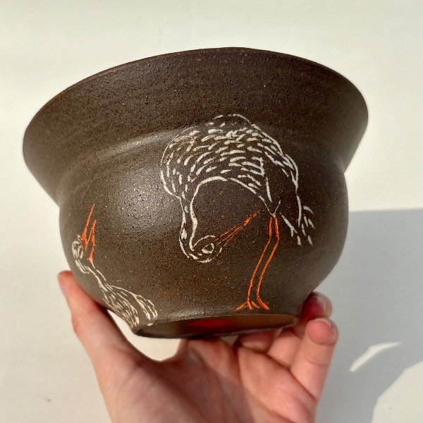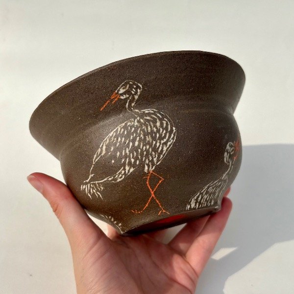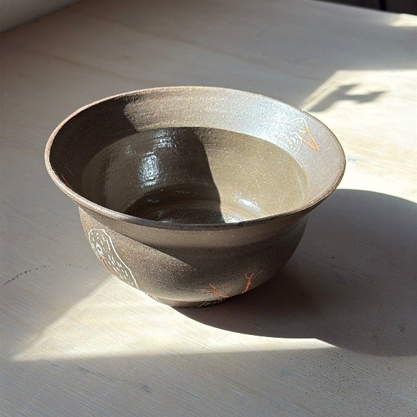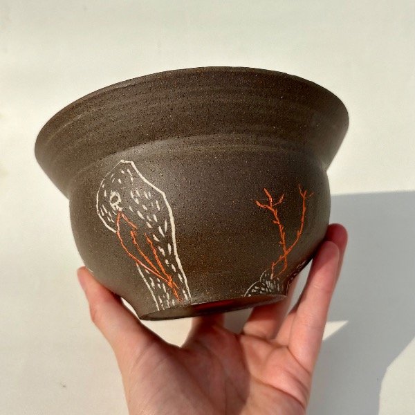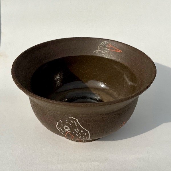 Pieza unica de alta temperatura. Modelada en torno, y decorada con la tecnica de Mishima.