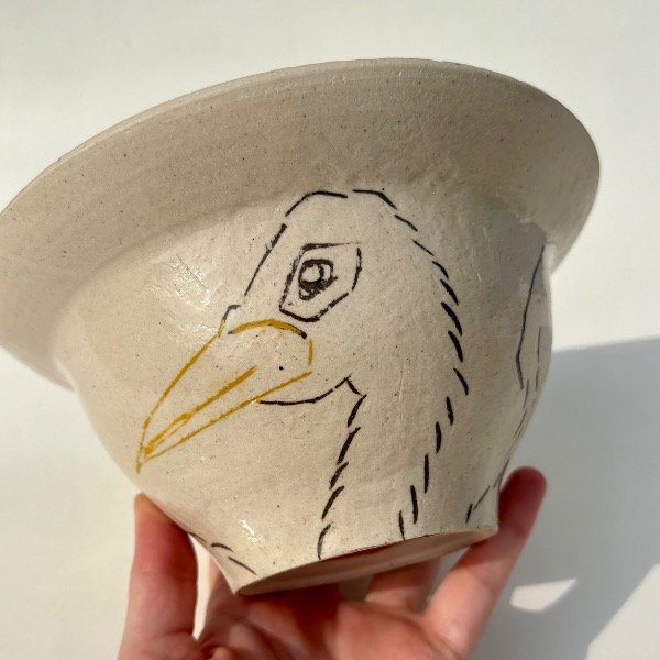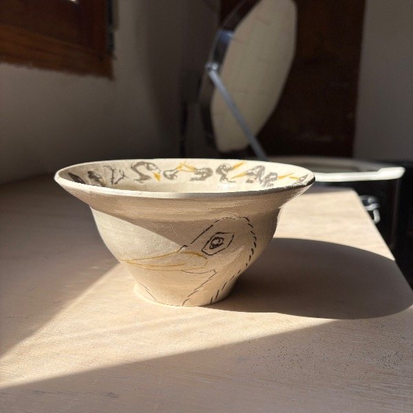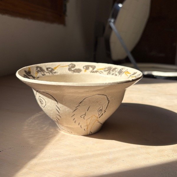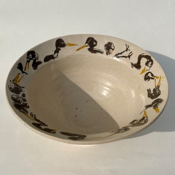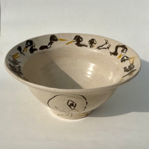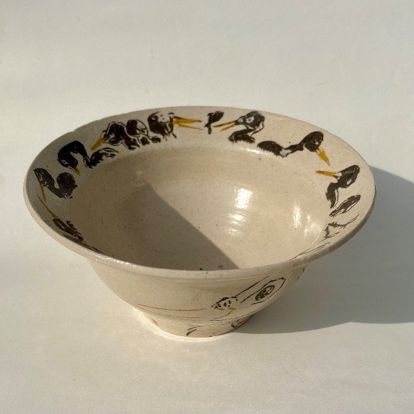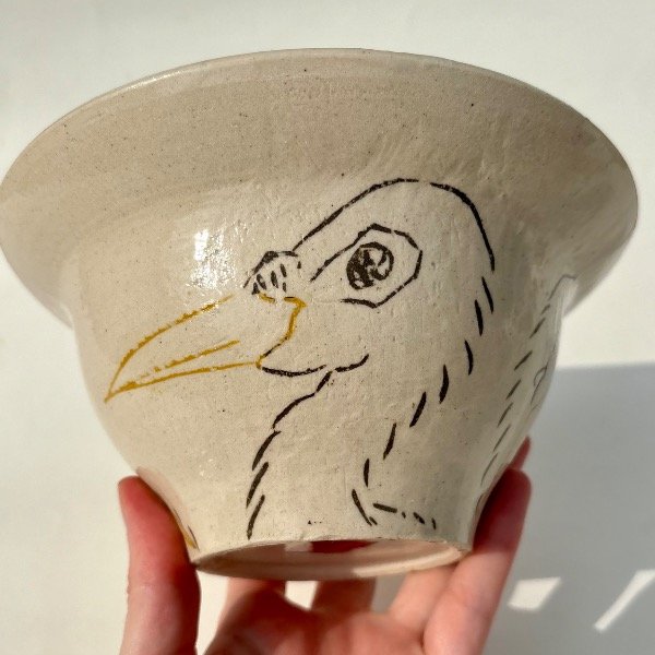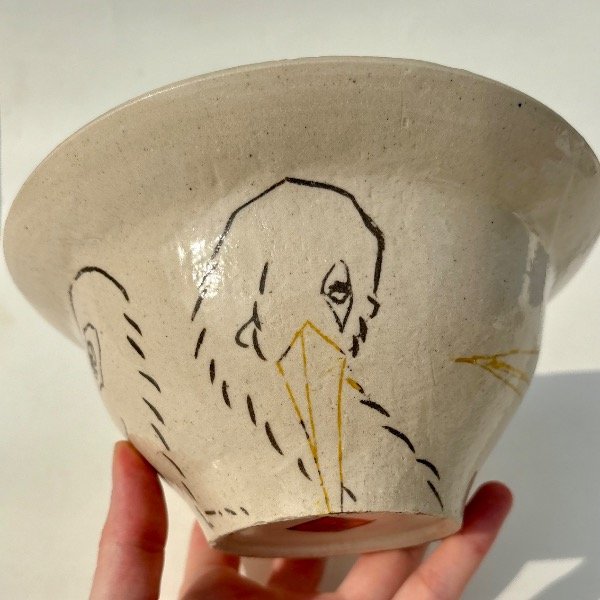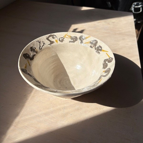Pieza unica de alta temperatura. Modelada en torno, y decorada con la tecnica de Mishima.