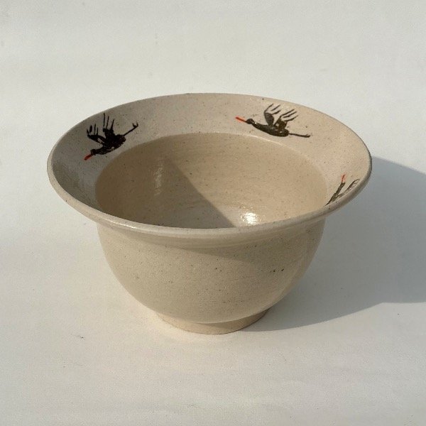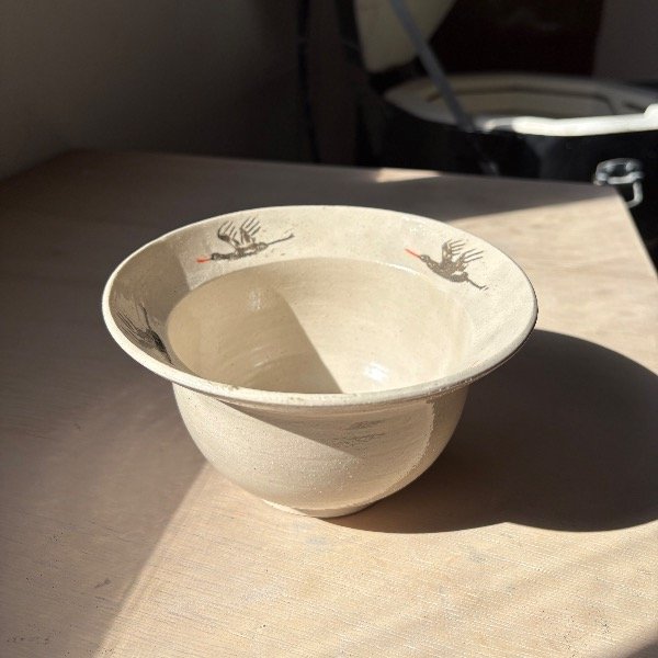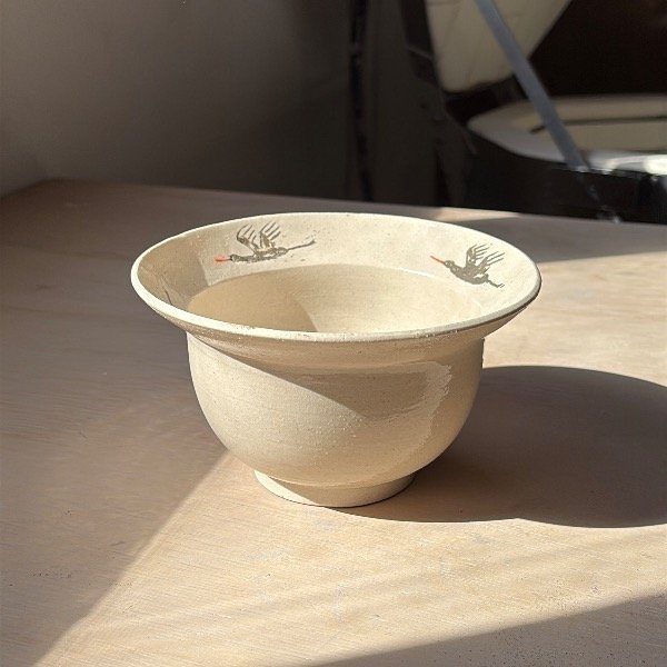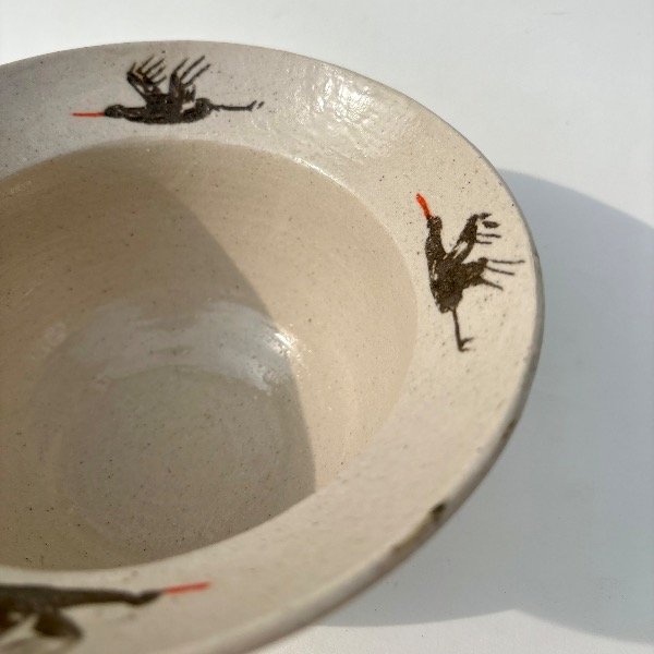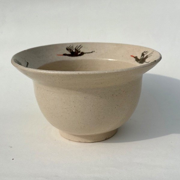 Pieza unica de alta temperatura. Modelada en torno, y decorada con la tecnica de Mishima.