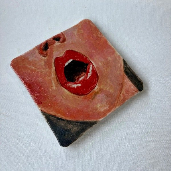 Pieza de alta temperatura única modelada y pintanda a mano.