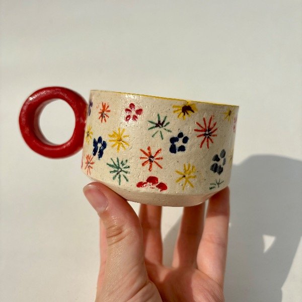 Pieza unica de alta temperatura. Modelada en torno, y decorada con la tecnica de Mishima.
