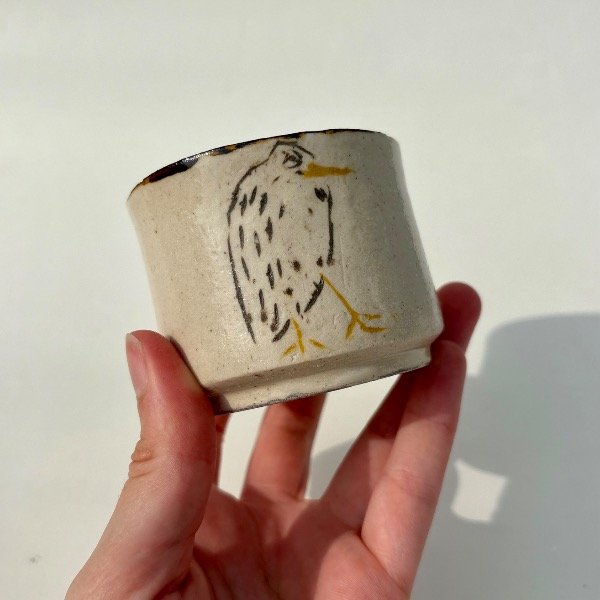 Pieza unica de alta temperatura. Modelada en torno, y decorada con la tecnica de Mishima.