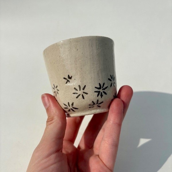 Pieza unica de alta temperatura. Modelada en torno, y decorada con la tecnica de Mishima.