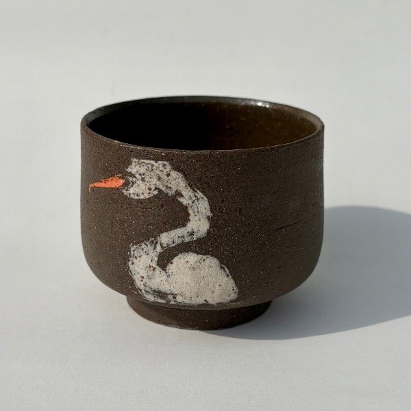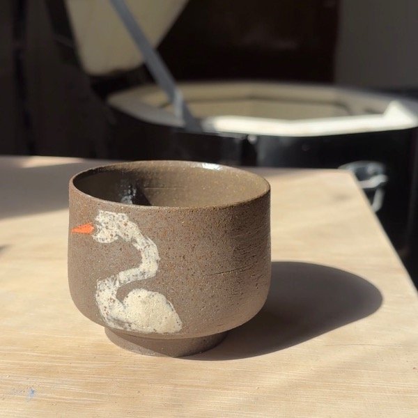 Pieza unica de alta temperatura. Modelada en torno, y decorada con la tecnica de Mishima.