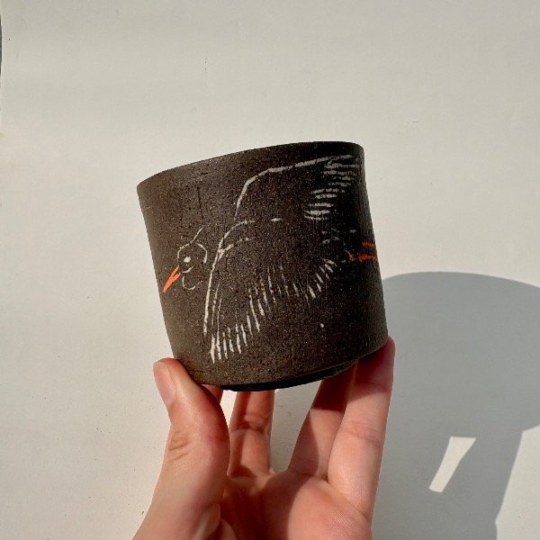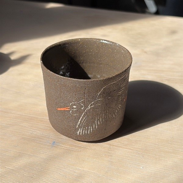 Pieza unica de alta temperatura. Modelada en torno, y decorada con la tecnica de Mishima.