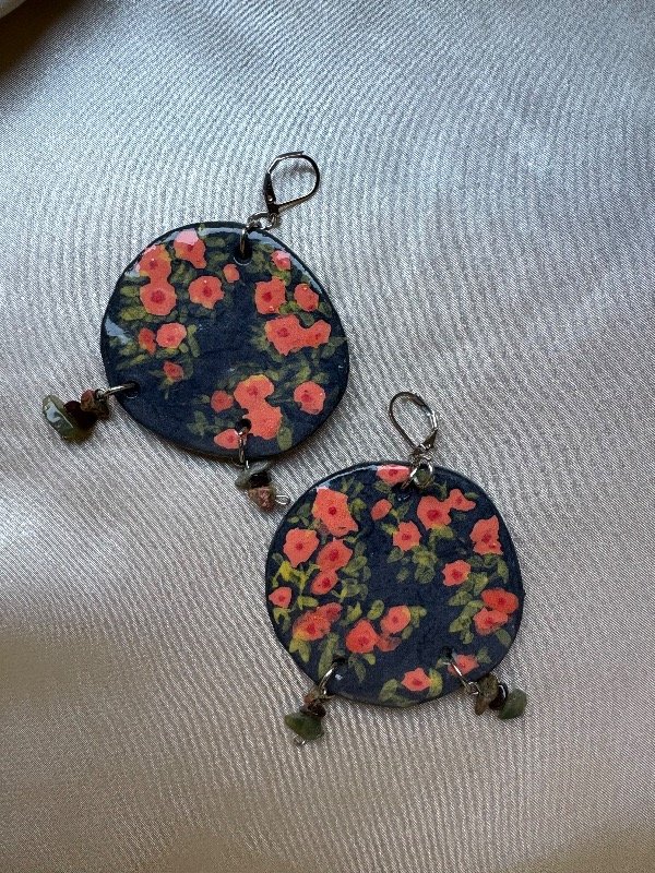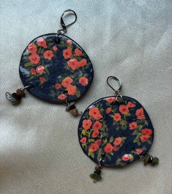 Aros de acero quirúrgico, con dije de cerámica y piedras