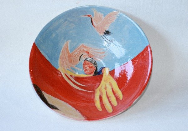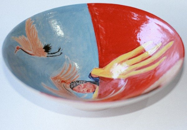 Pieza de alta temperatura, única, modelada y pintada a mano.