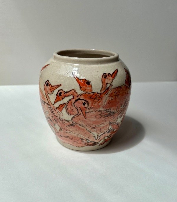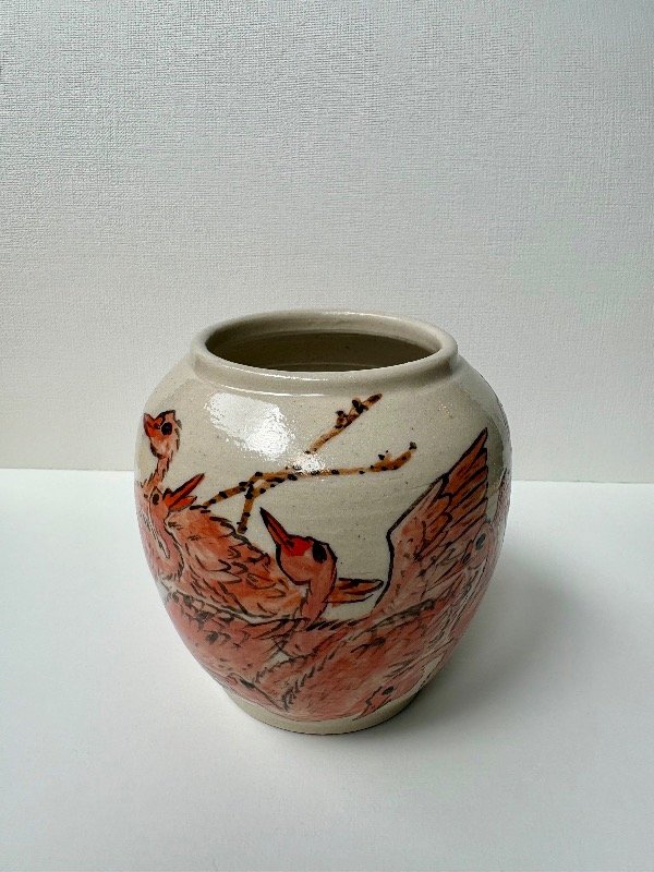 Pieza de alta temperatura, única, modelada y pintada a mano.
