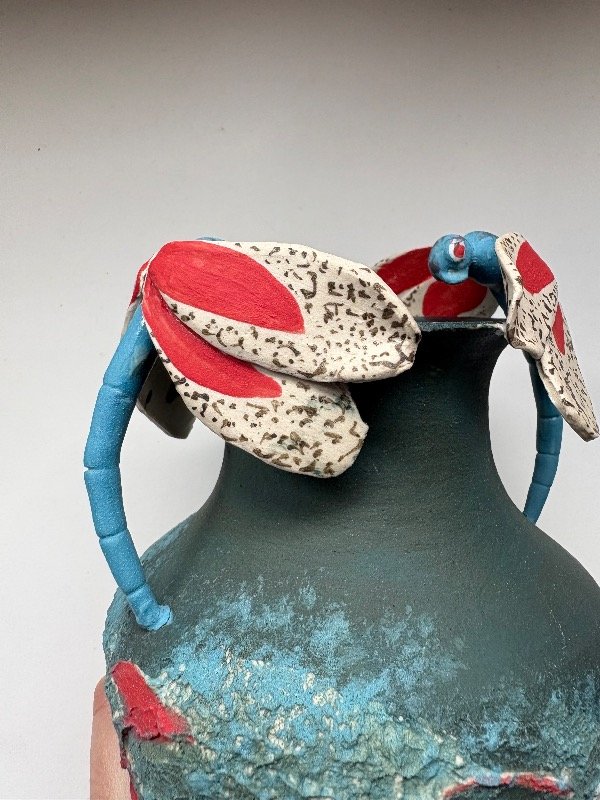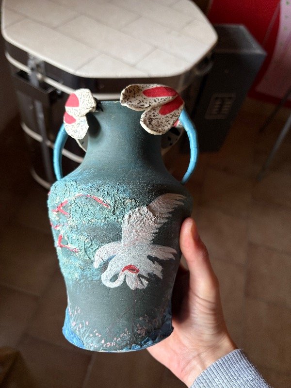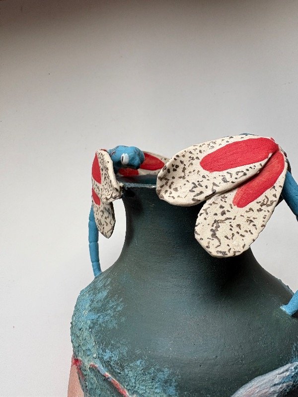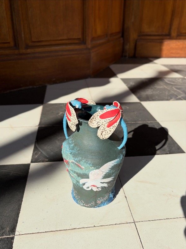 Pieza de alta temperatura, única, modelada y pintada a mano.