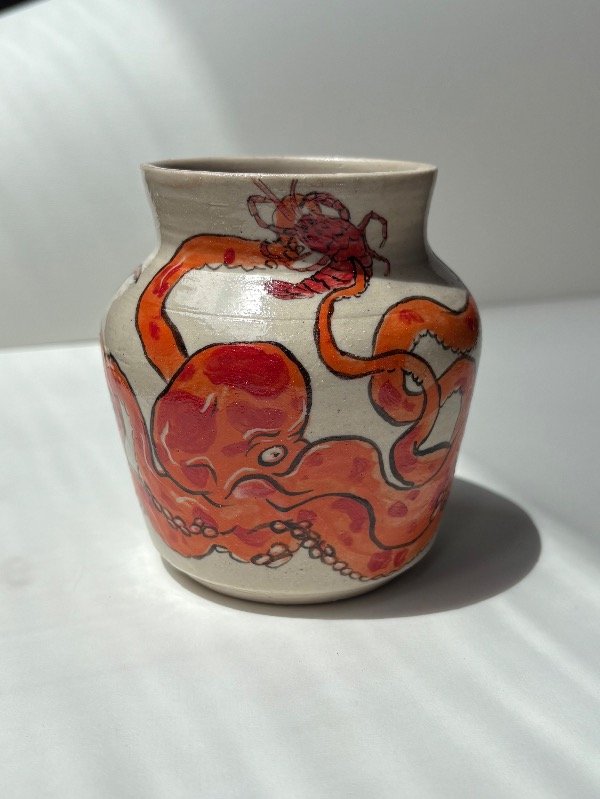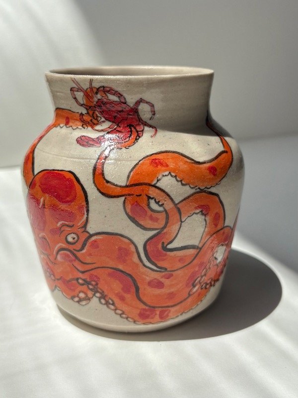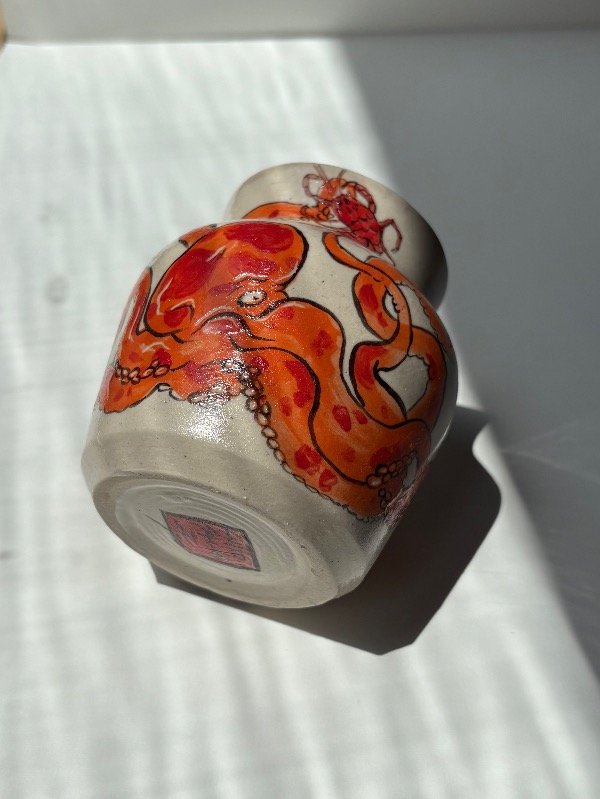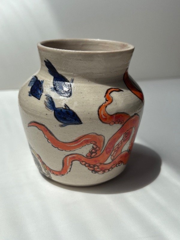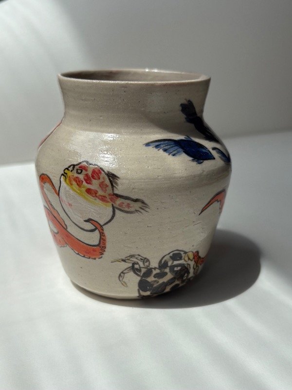 Pieza de alta temperatura, única, modelada y pintada a mano.