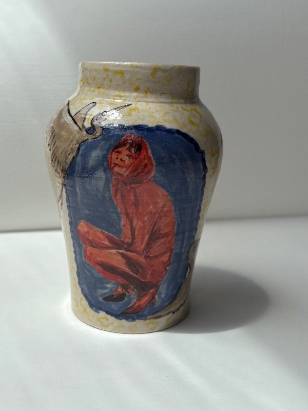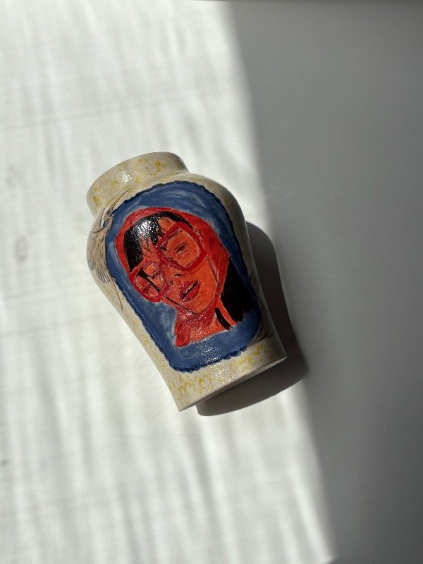 Pieza de alta temperatura, única, modelada y pintada a mano.