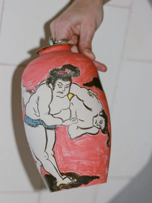 Pieza de alta temperatura, única, modelada y pintada a mano.